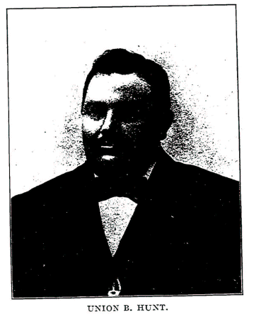 The Hunt family has done much to make Randolph the wealthy and progressive county it is today. Union B. Hunt was born in Nettle township, Randolph county, Indiana, September 2, 1864. His early education was acquired in common school. His studious habits and cheerful disposition never failed to make him a favorite with his teacher and schoolmates. Though Mr. Hunt is yet a young man, the old-fashioned spelling school was yet a fixture of the district school in his schoolboy days, and in "choosing up," the captain that got first choice invariably chose Union B. Hunt, and seldom failed to stand against all comers. Though Mr. Hunt attended at intervals higher institutions of learning, and made good use of his time, he is not a college graduate. He early acquired a taste for history, both ancient and modern, is quite thorough, and he has an excellent acquaintance with the writers in ancient and modern literature. In conversation he is polished and pleasing.