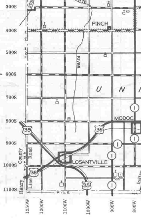 PostOffices: Melacton, Goodview, Fallen Timber #2, Fallen Timber #1, Old Losantville, Modoc, Losantville, Chamness