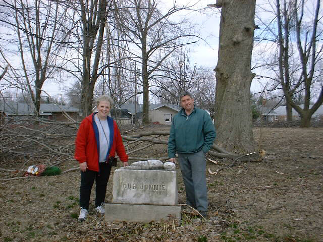 Our Jonnie, and others are in the Old Winchester Cemetery.  Pictured here is the Old Winchester Cemetery Committee Co-Chairs, Sharon Smith and Bobby Manning.  Our Jonnie was part of the inspiration of the movie Now and Then (1995) written by I. Marlene King, who spent childhood years, just like Sharon playing in this cemetery and leaving trinkets for Our Jonnie.